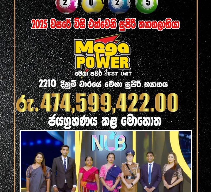 මෙගා පවර් 2210 දිනුම් වාරයේ මෙගා සුපිරි ත්යාගලාභියා ගොකරැල්ලෙන්. මෙරට ඉතිහාසයේ දැවැන්තම ලොතරැයි ත්යාග මුදල ජයග්රහණය කෙරේ. ත්යාග මුදලේ වටිනාකම හතලිස් හත්කෝටි හතලිස් පන් ලක්ෂ අනූ නව දහස් හාරසිය විසි දෙකකි. මෙරට ඉතිහාසයේ එදා මෙදා තුර දැවැන්තම ලොතරැයි ත්යාග මුදලට ජයග්රාහකයෙකු බිහි කිරීමට ජාතික ලොතරැයි මණ්ඩලය ඊයේ (16) සමත්වුණා. ලොතරැයිපත…