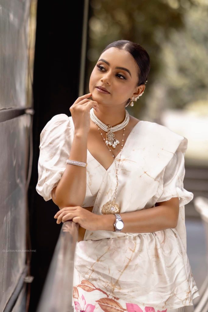දිනක්ෂි කාලෙකට පස්සේ වෙනසකටත් එක්ක ඔසරියක් ඇදලා. බලන්නකෝ ඒ ඇඳුමට එයාගෙ හැඩ.