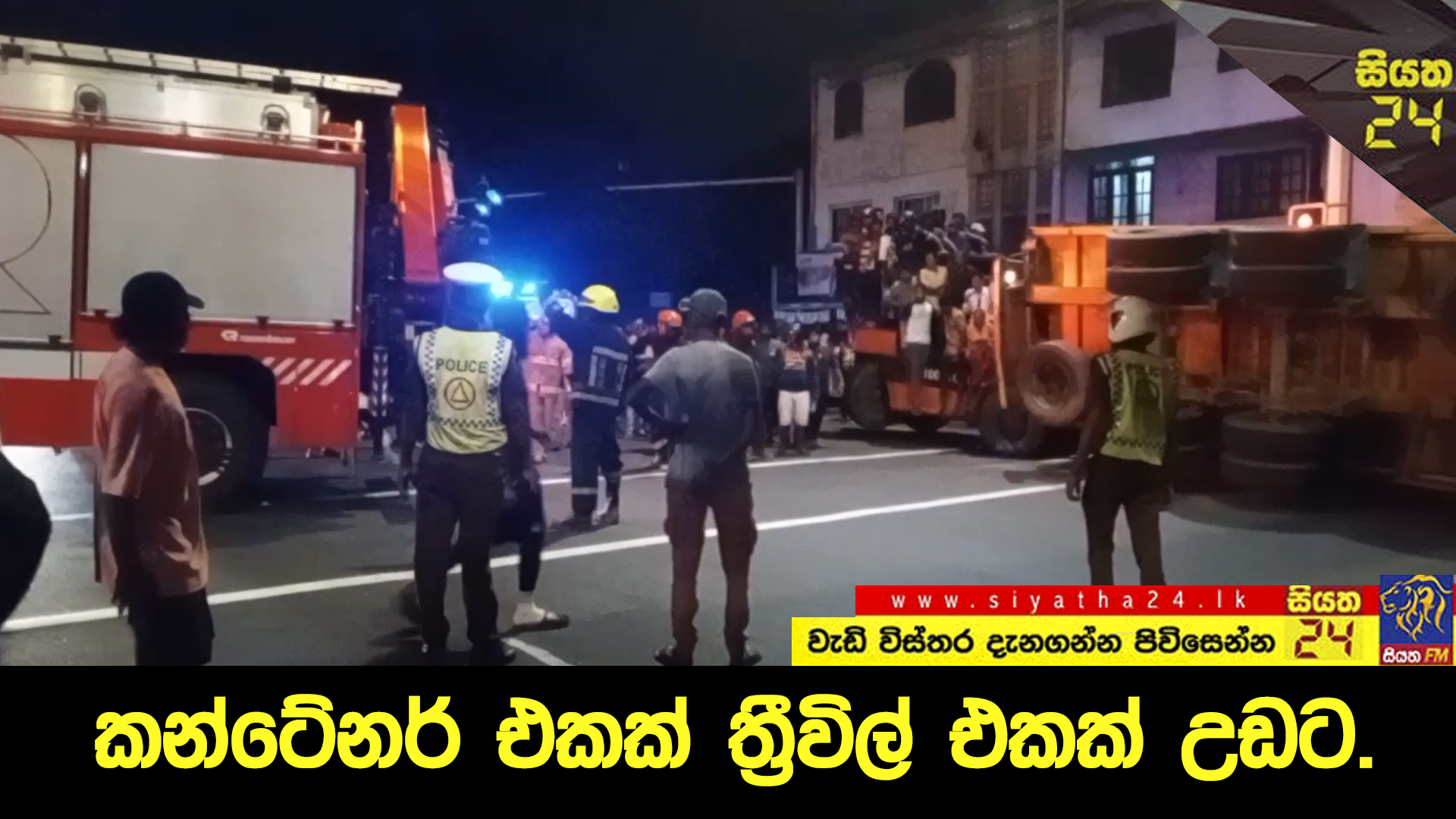 අද අලුයම ඔරුගොඩවත්තේදී කන්ටේනර් රථයක් ත්රී රෝද රථයකට පෙරළී තිබෙනවා. අද අළුයම එකයි තිහට පමණ මෙම අනතුර සිදුව තිබෙන්නේ. ඔරුගොඩවත්ත මංසන්ධියේ විදුලි සංඥා පුවරු පසුකර කන්ටේනර් රථය ඔරුගොඩවත්ත දෙසට ගමන් කරනවාත් සමඟ එය නවතා තිබූ ත්රී රෝද රථයකටයි පෙරළී තිබෙන්නේ. ත්රී රෝද රථයේ සිටි රියදුරා බරපතල තුවාල ලබා සිටි අතර කොළඹ ගිනි නිවීමේ ඒකකය ප්රදේශවාසීන් එක්ව ඔහුව ගලවා ගැනීමෙන් අනතුරුව රෝහල් ගත කර තිබෙනව…