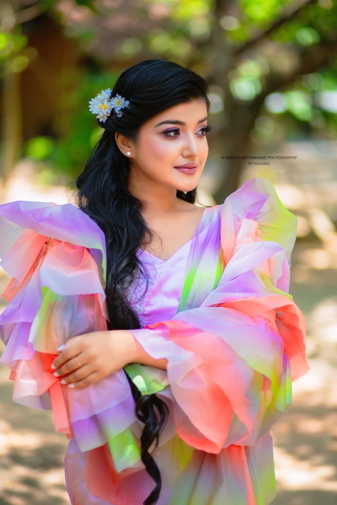 පසුගිය දා ඇය පාට පාටින් හැඩවුණ අලුත් සාරි විලාසිතාවකින් සැරසී ඡායාරූප කිහිපයක් සමාජ මාධ්යයට එක් කර තිබුණා.