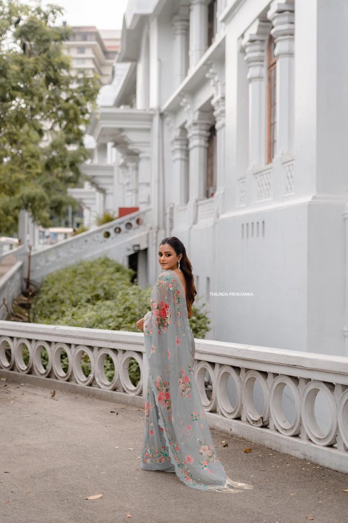 පසුගිය දා ඇය රංගනයෙන් දායක වූ චිත්රපටයක මුහුරත් උළෙලකට සාරි විලාසිතාවකින් සැරසී සිටියා.
