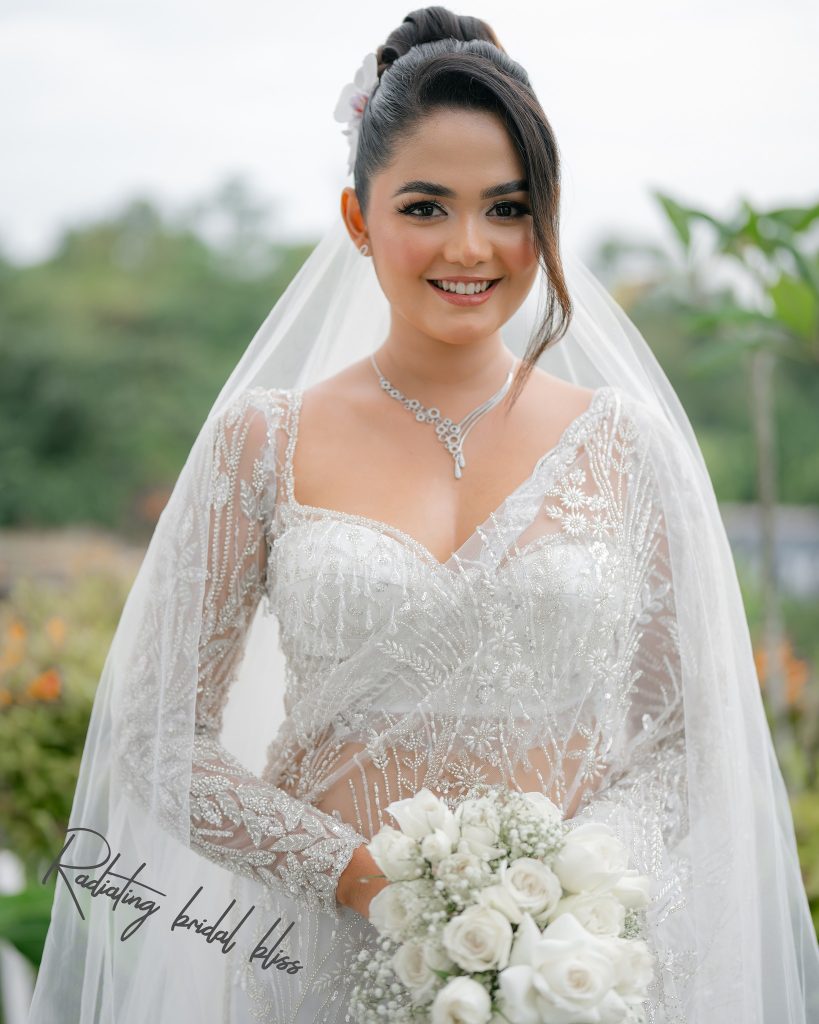 සාරි විලාසිතාවකින් හැඩගැන්වුණු ඇය සුන්දර මනාලියක් වී සිටියා.